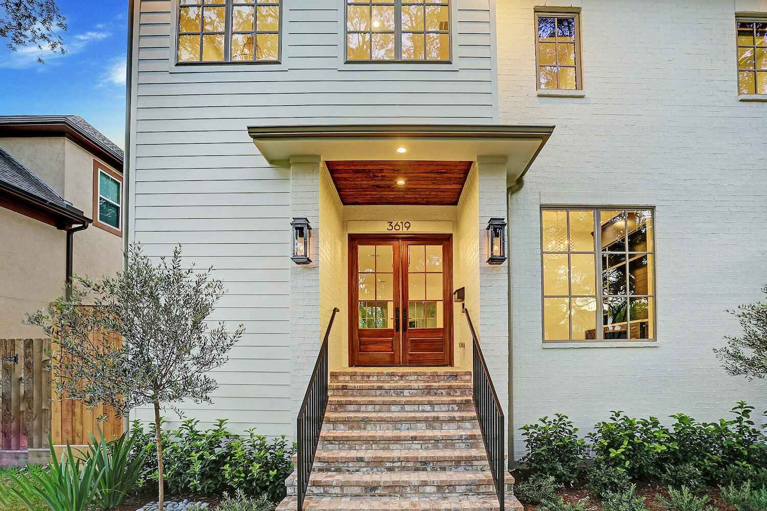 Trees! During the initial design process there were three main points of focus for these owners: preserve all oak trees, keep size under 3,000 square feet, and have a large back porch. The interior is designed as an open concept where living, dining, kitchen and mud room interconnect for the active lifestyle that comes with young families. A back porch built of Garapa wood of just over 600 square feet is a continuation of this space, perfect for entertaining.